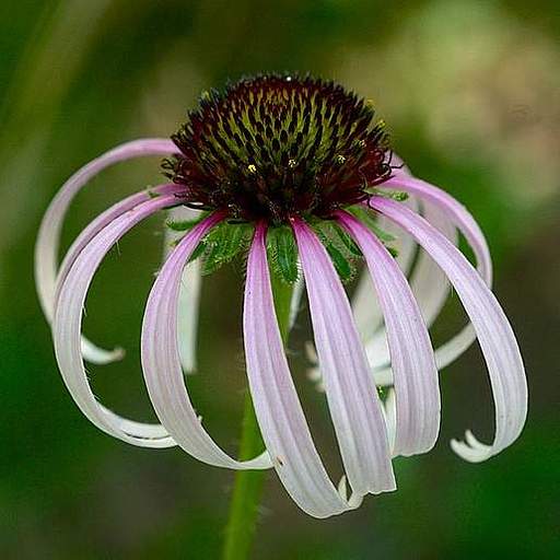 This compact and narrow-leafed perennial coneflower species can grow up to 1.2m tall. It has upright, hairy, unbranched stems and grey-green leaves. During the summer, it produces a profusion of daisy-like flowers with pale pink to purple rays that droop from a central orange cone.