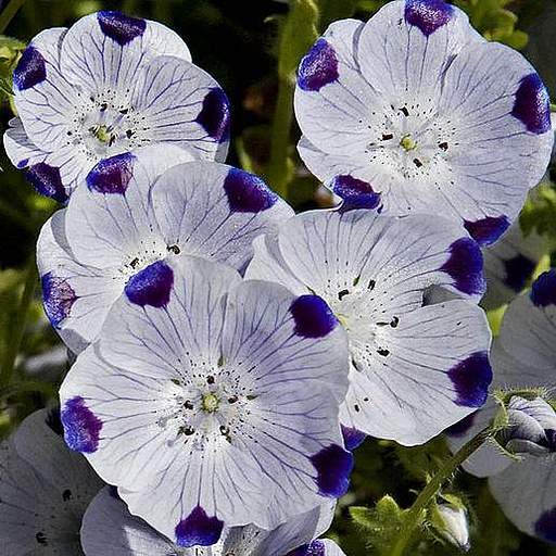 Nemophila menziesii, also known as baby blue eyes or baby's-blue-eyes, is a low-growing and trailing annual herb native to western North America. It is characterized by its 2cm deep purple to almost black flowers that are delicately edged with white. While 'Penny Black' is a variety of Nemophila menziesii that exhibits this striking color combination, it is important to note that baby blue eyes is a super rare houseplant that thrives with regular watering and long-lasting, direct light. Ideally, it should be placed within one foot of a window. This plant prefers well-draining soil and does not require additional fertilizers if repotted when it doubles in size. Although belonging to the Nemophila genus, it is native to Mexico.